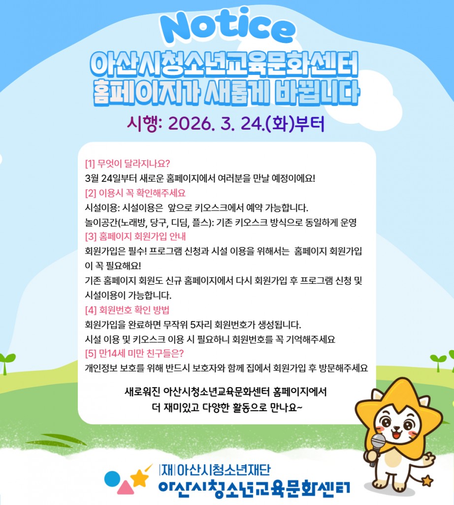 - <아산시청소년교육문화센터> 돌봄이 필요한 예비 중1~중2 청소년 모두 모여라!! 2022년 12월 01일 오후 5:06